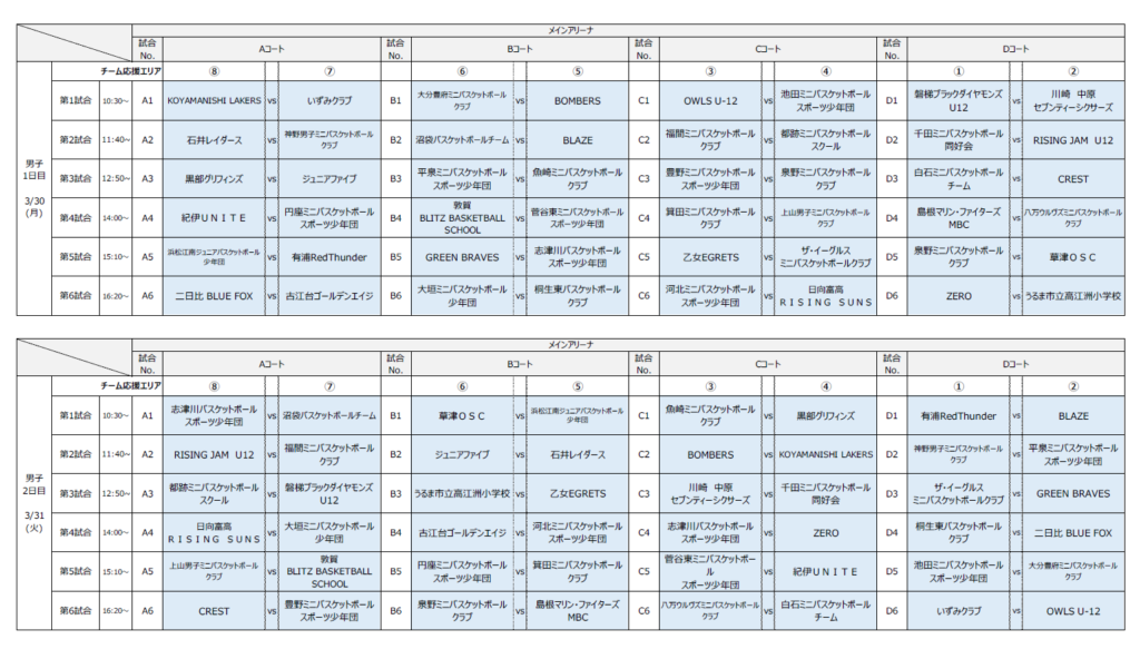 4. 【最終結果】第19回都城カップミニバスケットボール大会2025/5/5.6開催!!!