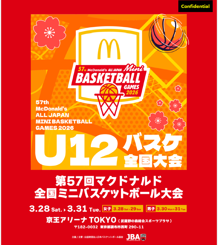 ≪いよいよ今週末開幕≫第57回マクドナルド全国ミニバスケットボ-ル大会2026/3/28~31開催!!!