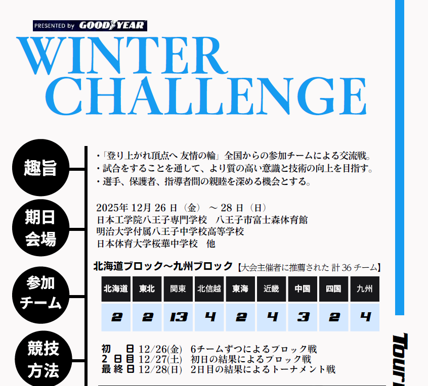 12月の東京八王子、ミニバス女子日本一を競う「ウィンターチャレンジ2025」が今年も開催されます!