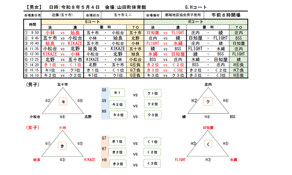 さあ、こちら山之口町体育館の組み合わせがこちら