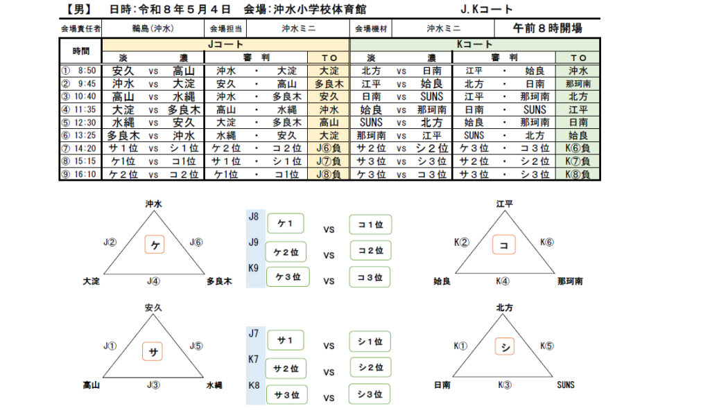 沖水小学校会場の組み合わせがこちら
