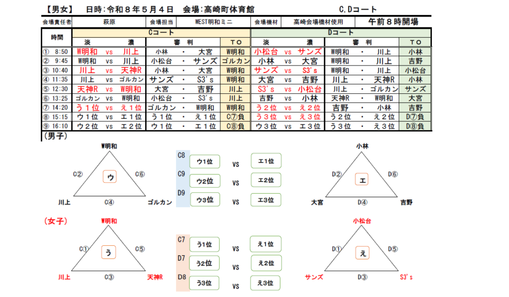 高崎町体育館の組み合わせがこちらです!