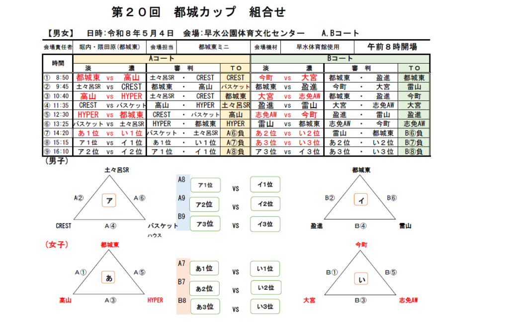 高城体育館の組み合わせがこちら!