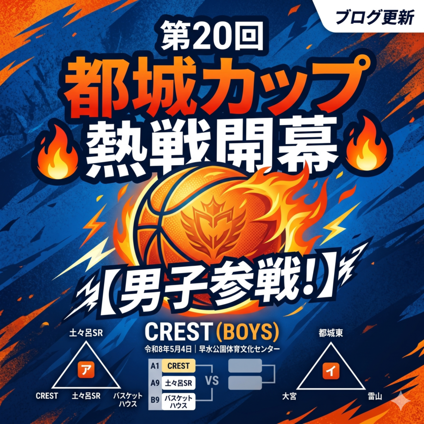 いよいよ熱いバスケットボールの季節が本格的に到来しました。 来る令和8年5月4日5日、CREST男子チームは「第20回都城カップ」に参加いたします。