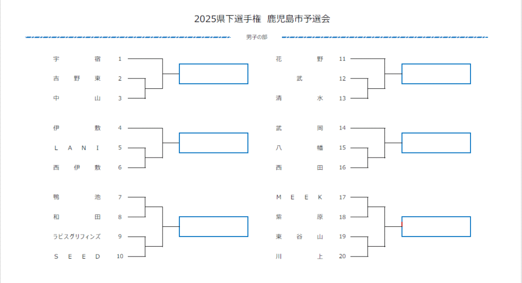 〈男子組み合わせ〉県下選手権2025鹿児島市予選会