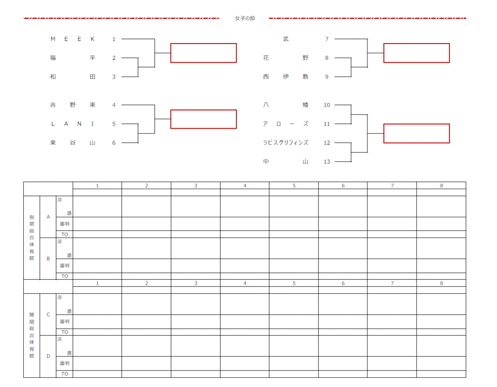 女子の組み合わせがこちら!女子は4枠を争う形となります。