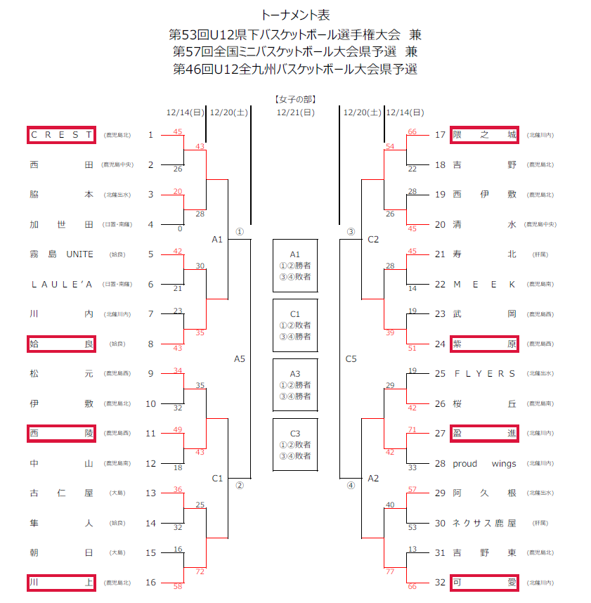 CREST・姶良・西陵・川上・隈之城・紫原・えい進・可愛の8チームになりました。
