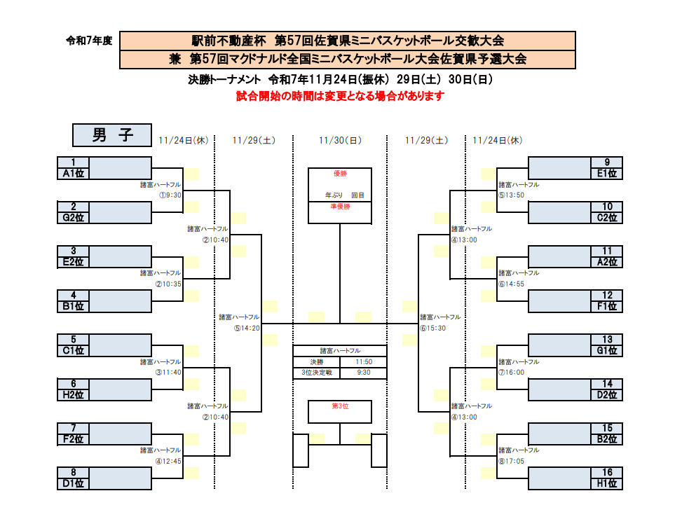 駅前不動産杯 第57回佐賀県交歓大会(秋季大会)兼 第57回マクドナルド全国ミニバスケットボール大会佐賀県予選大会2025/11/23.24.29.30開催!!!