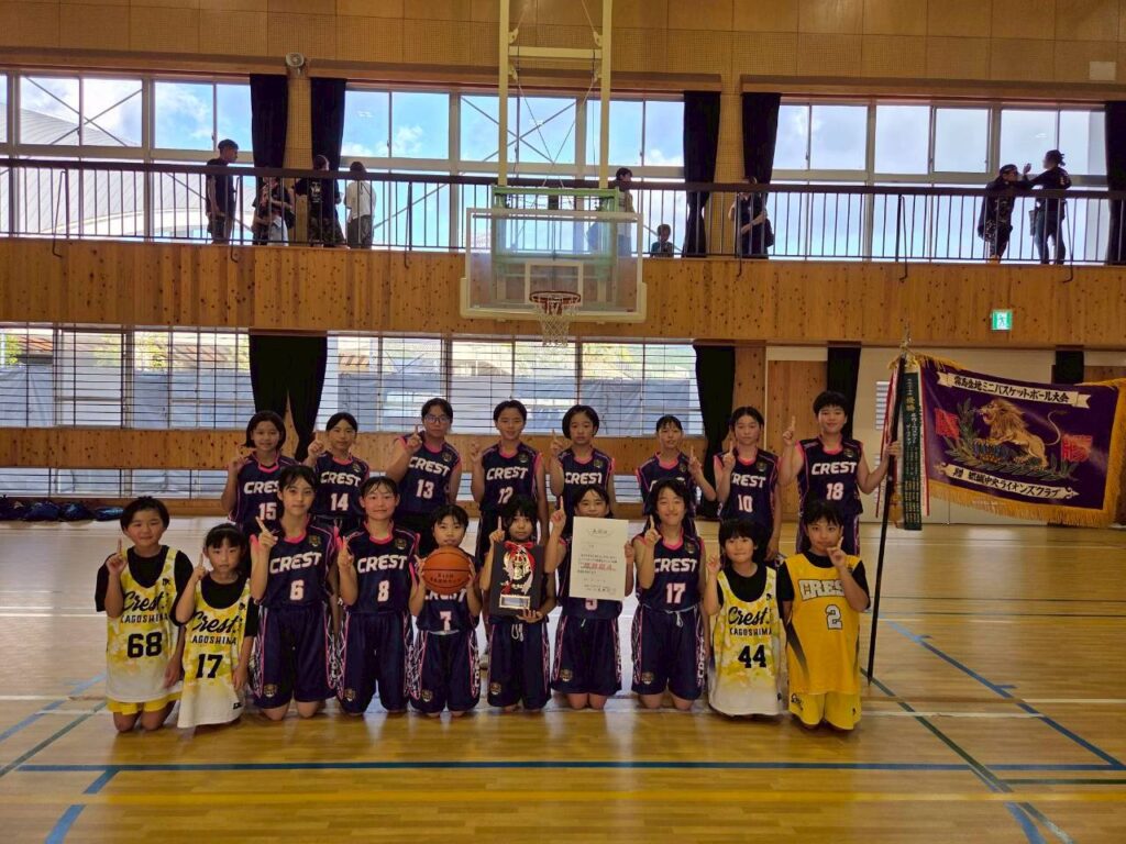 CREST女子は、2日目はWAGS(長崎)さん、明道(宮崎)さんに見事勝利し、決勝は都城東さんとのゲームになりました。1Q負けていましたが、少しずつ差が付き、見事11点差で勝利!!!優勝となりました!!