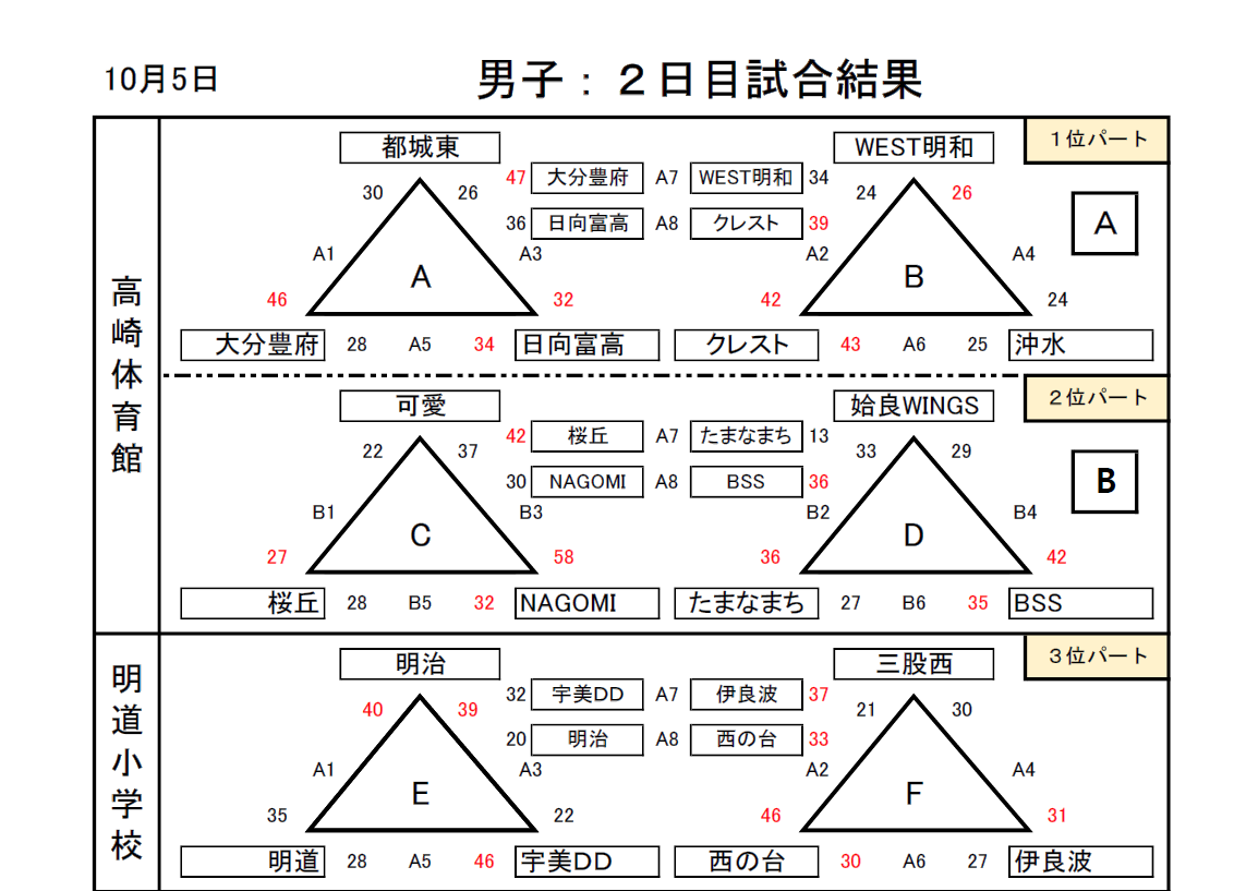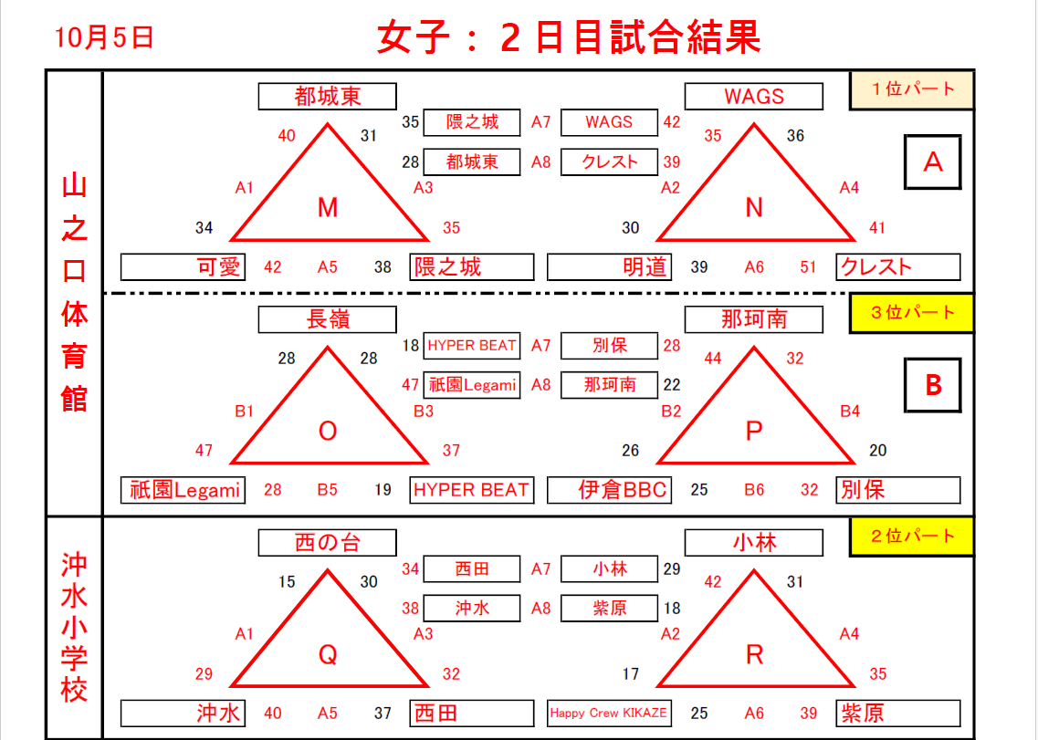 (相手パートさんは、1勝1敗で並んで得失点の差で1位都城東2位隈之城3位可愛という結果でしたね。プラッセ&だいわカップMBC大会で対戦した2チームともとても頑張ってました。また、切磋琢磨していきましょう!!)